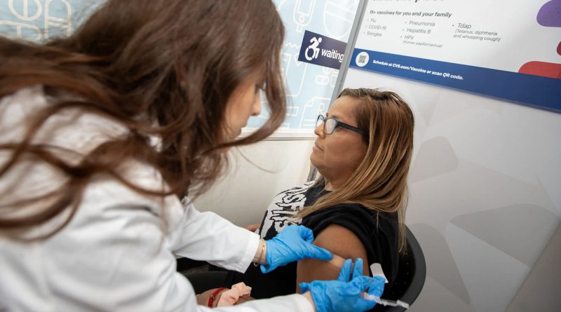 Pharmacist Ani Martirosyan administers an immunization to a patient at a CVS on Tuesday, Sept. 12, 2023 in Glendale, CA.