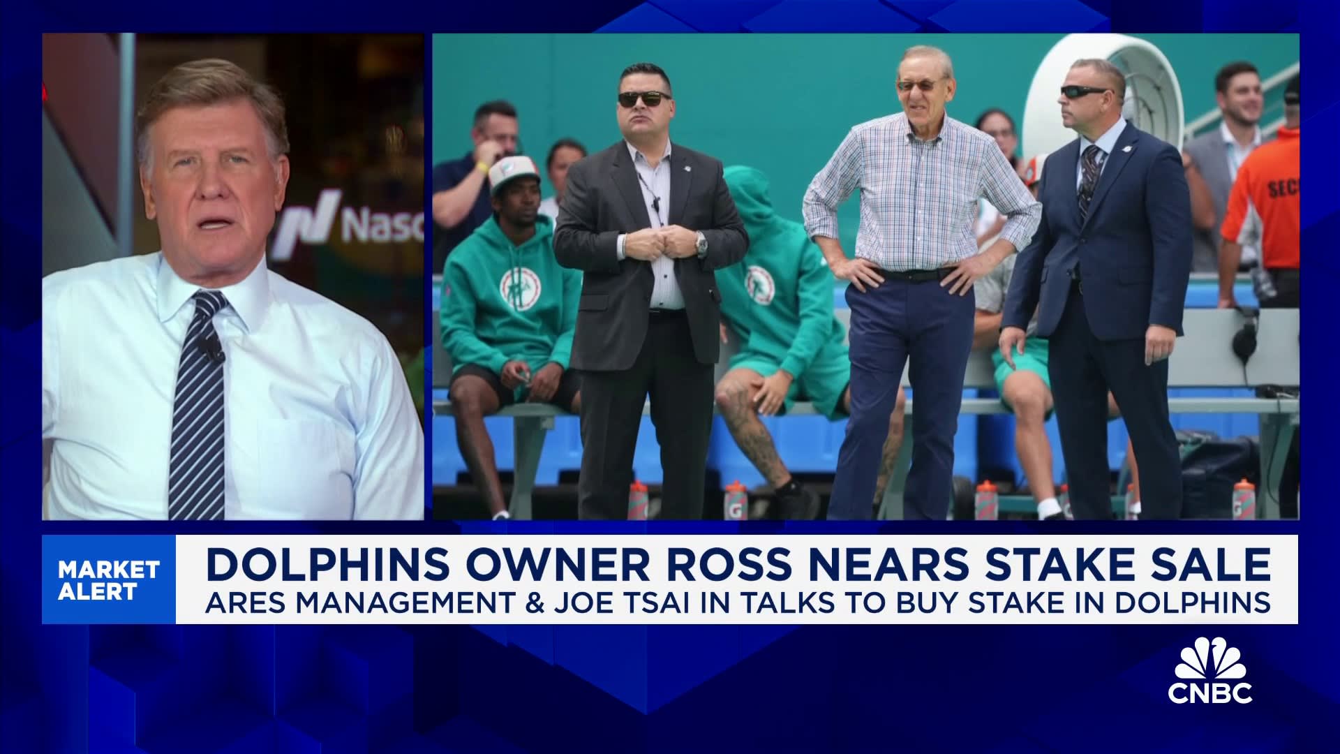 The Miami Dolphins are in advanced talks to sell a minority stake in the team to private equity firm Ares Management and billionaire Joe Tsai, CNBC has learned, highlighting the growing trend of owners looking to build their sports portfolios to include multiple teams and operate their own stadiums to maximize revenue.