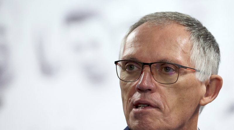 Carlos Tavares, chief executive officer of Stellantis NV, speaks to the media at the Stellantis auto manufacturing plant in Sochaux, France, on Thursday, Oct. 3, 2024.