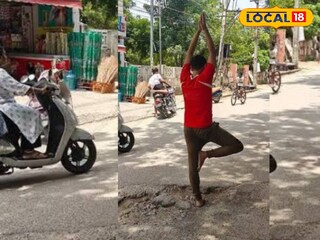 गड्ढे में बैठकर किया योग… युवक के विरोध से 6 घंटे में सुधरी सड़क, मामला वायरल!