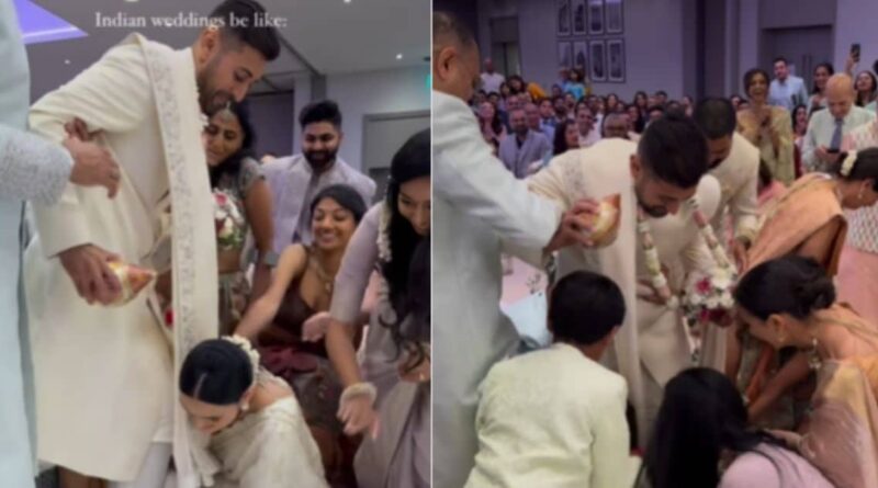शादी-ब्याह में अगर नाते-रिश्तेदारों की मस्ती न हो, दोस्तों का धमाल न हो और हंसी-ठहाके न हों, तो मज़ा ही नहीं आता है. तभी तो 4-5 दिन के फंक्शन में रोज़ाना कुछ न कुछ आयोजन रहता ही है, ताकि शादी की रौनक लगी रहे. खासतौर पर शादी के दिन तो इतने रस्म-रिवाज़ होते हैं कि दूल्हा-दुल्हन समेत पूरा घर ही व्यस्त रहता है. ऐसी ही एक मज़ेदार रस्म का वीडियो इस वक्त वायरल हो रहा है.