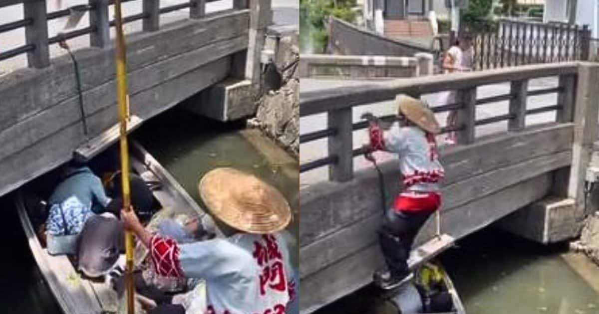 सुहाना मौसम हो, शहरों के बीच से गुजरती नहर और उसे धीरे-धीरे चलने वाली नाव हो, तो फिर बोटिंग कौन नहीं करना चाहेगा. जापान के यानागवा कस्बे में भी ऐसा ही नजारा देखने को मिलता है, जिसके बीच कई नहर बनी हैं. यहां टूरिस्ट घूमने आते हैं और बोटिंग का आनंद लेते हैं. पर हाल ही में इस जगह का एक वीडियो वायरल (boatman leave boat climb bridge Japan video) हो रहा है, जिसमें लोग बोटिंग का मजा तो ले रहे हैं, पर उसी दौरान बोट का नाविक ऐसी हरकत करता है, कि नाव पर बैठे टूरिस्ट्स के होश उड़ जाते हैं!