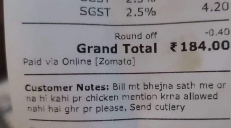 ‘बिल मत देना न ही चिकन लिखना कहीं ‘ ग्राहक ने की ऐसी रिक्वेस्ट, Zomato हैरान!