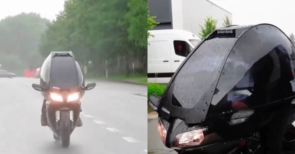 वायरल हो रहे इस वीडियो में आप देख सकते हैं कि जमकर बारिश हो रही है. ऐसे में बाइक से कहीं बाहर जाने का मतलब पूरी तरह से भीग जाना है. लेकिन काले रंग की इस बाइक को देखिए. कैसे इसकी सीटों को कवर किया गया है. एक शख्स उस बाइक के कवर को ऊपर की ओर उठाता है, फिर उसके अंदर जाकर बैठ जाता है. इसके बाद कवर को नीचे की ओर गिरा देता है. फिर वो गाड़ी स्टार्ट करता है और तेज रफ्तार में बारिश के बीच शहर की सड़कों पर बाइक को दौड़ाने लगता है. लेकिन पानी का एक बूंद भी बाइक के अंदर नहीं जा पाती है.