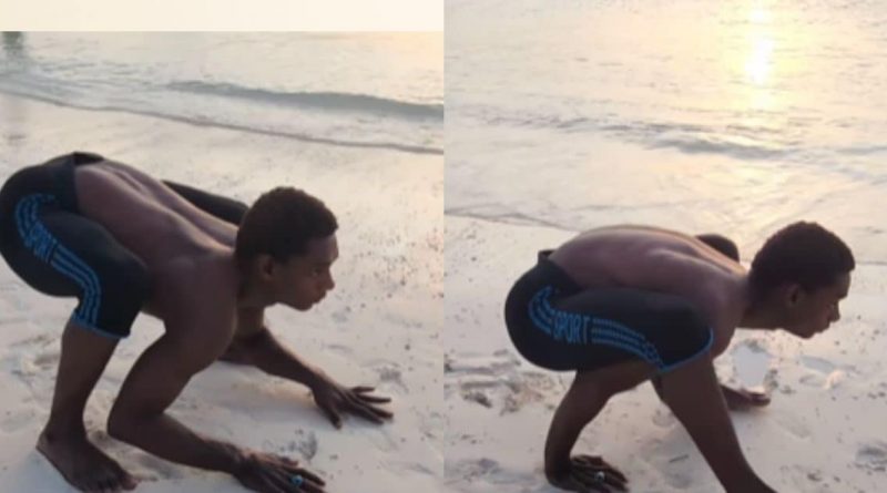 वीडियो में हसन माइकल नाम का यह शक्स समुद्र के किनारे एक बीच पर पहले दोनों हाथ और दोनों पैर रेत पर रखकर बैठता और फिर पैरों को हाथों के बीच फंसा के कभी कोई योगमुद्रा तो कभी हाथों के बल मकड़ी की तरह रेत पर रेंगने लगता है. इतना हीं इस दौरान वह कई बार अपने पैर की एडी उपर नीचे करता भी दिखता है.