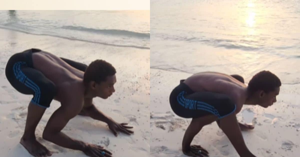 वीडियो में हसन माइकल नाम का यह शक्स समुद्र के किनारे एक बीच पर पहले दोनों हाथ और दोनों पैर रेत पर रखकर बैठता और फिर पैरों को हाथों के बीच फंसा के कभी कोई योगमुद्रा तो कभी हाथों के बल मकड़ी की तरह रेत पर रेंगने लगता है. इतना हीं इस दौरान वह कई बार अपने पैर की एडी उपर नीचे करता भी दिखता है.