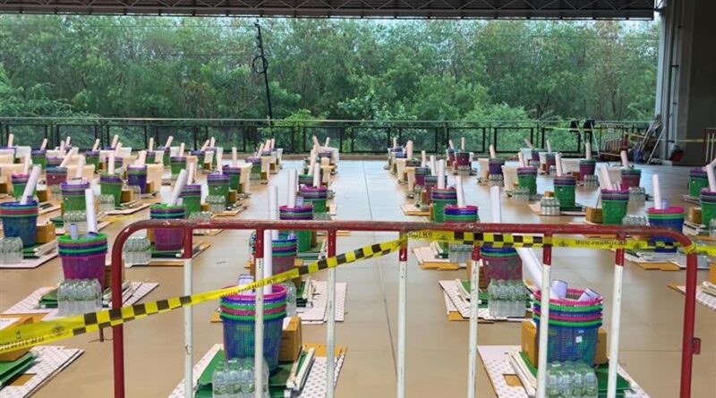 Poll staff check ballot boxes and other materials at Korat Hall in the Central Korat shopping mall in Nakhon Ratchasima on Saturday. (Photo: Prasit Tangprasert)