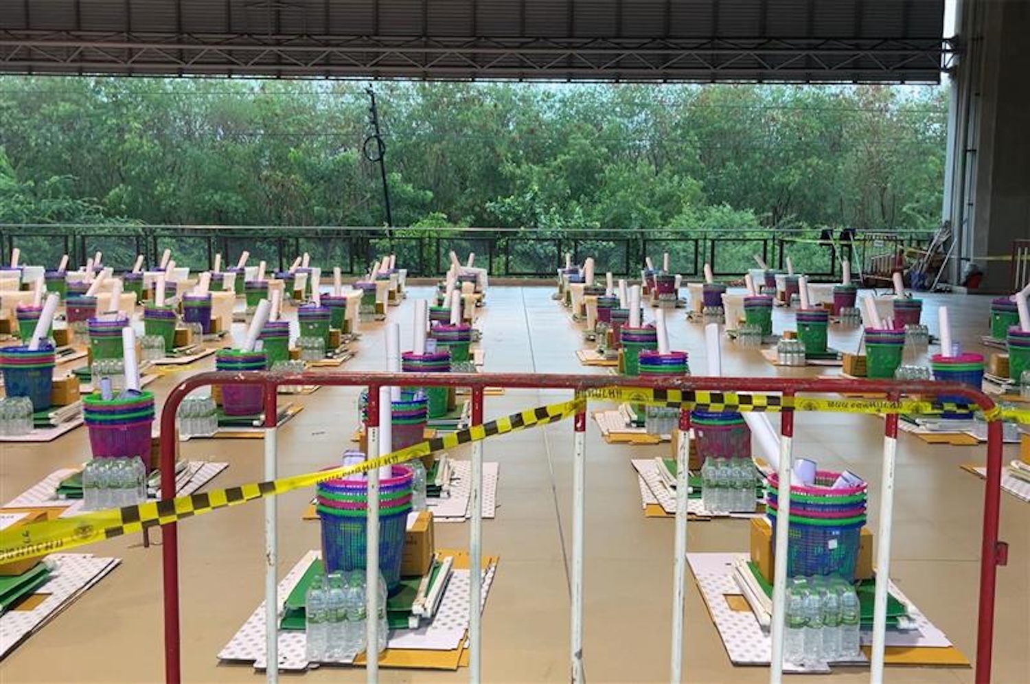 Poll workers and supervisors descended on Korat Hall at the Central Korat shopping mall on Saturday to receive their ballot boxes and other materials.
