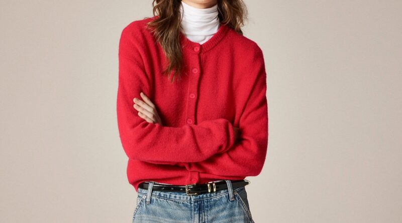 J.Crew’s denim is so good — one of the first-ever purchases I made with my high school babysitting money was a pair of their straight-leg jeans — and a wide-rib sweater dress would be stunning with a deep red lip.