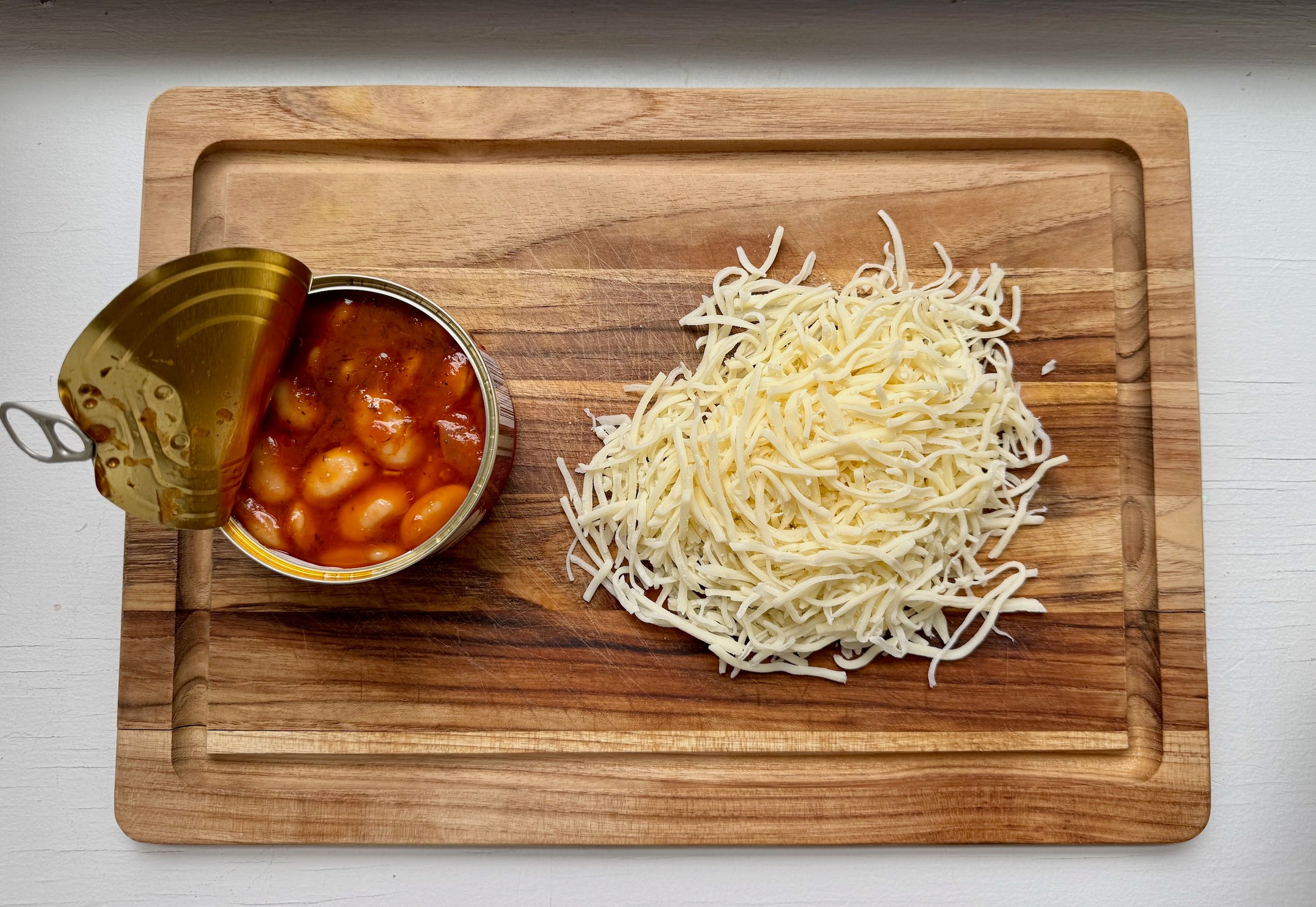 1 can of white or gigante beans in tomato sauce (I used these, but any brand works! Just make sure it’s savory sauce — not sweet, like Heinz baked beans)