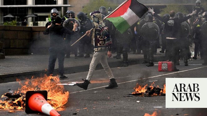 SYDNEY: Anti-war protesters and police clashed outside a defense exhibition in Australia’s second-largest city of Melbourne on Wednesday, with dozens arrested as police used sponge grenades, flash-bang devices and irritant sprays to control parts of the hostile crowd.