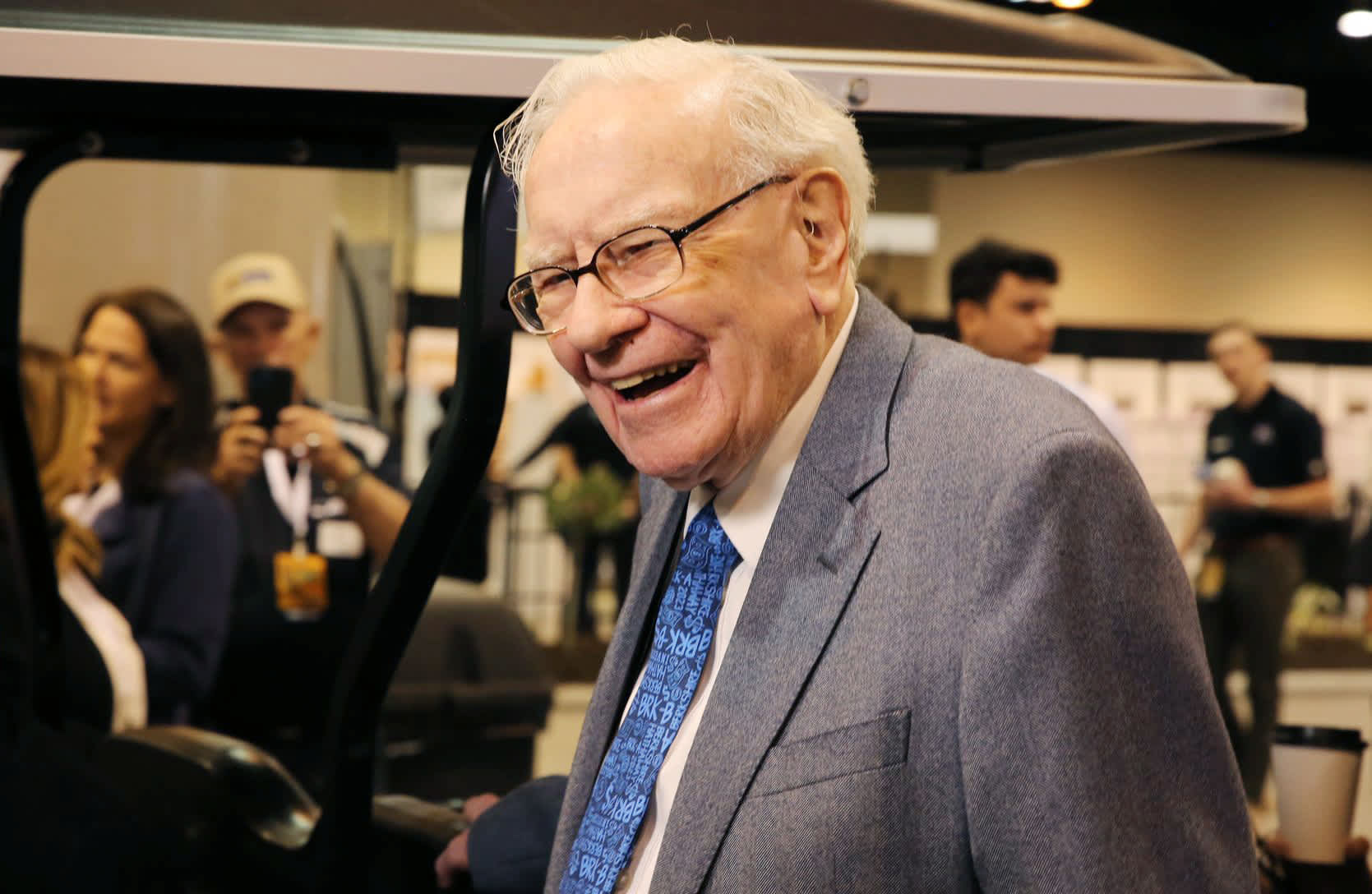 Warren Buffett tours the grounds at the Berkshire Hathaway Annual Shareholders Meeting in Omaha Nebraska.