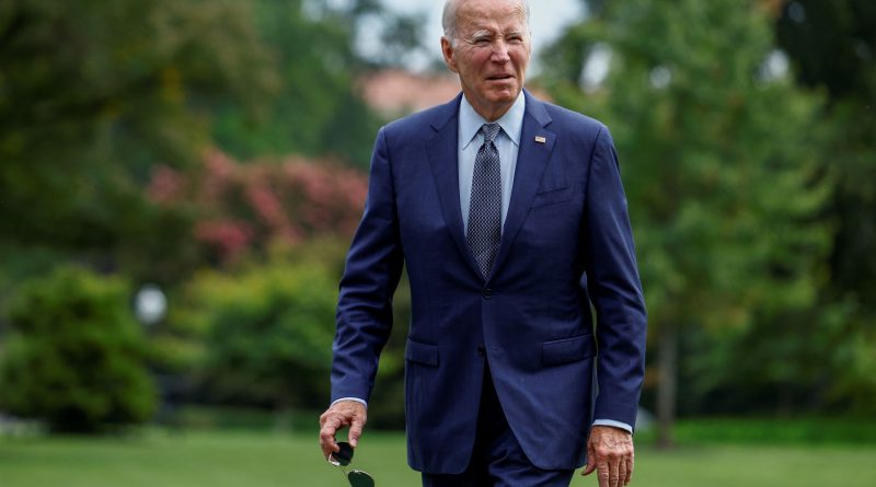 U.S. President Joe Biden walks to the White House from Marine One on the South Lawn of the White House in Washington, U.S., September 17, 2023.
