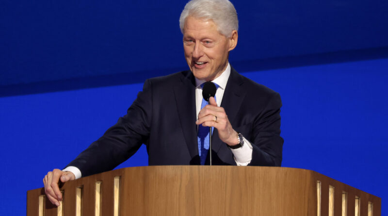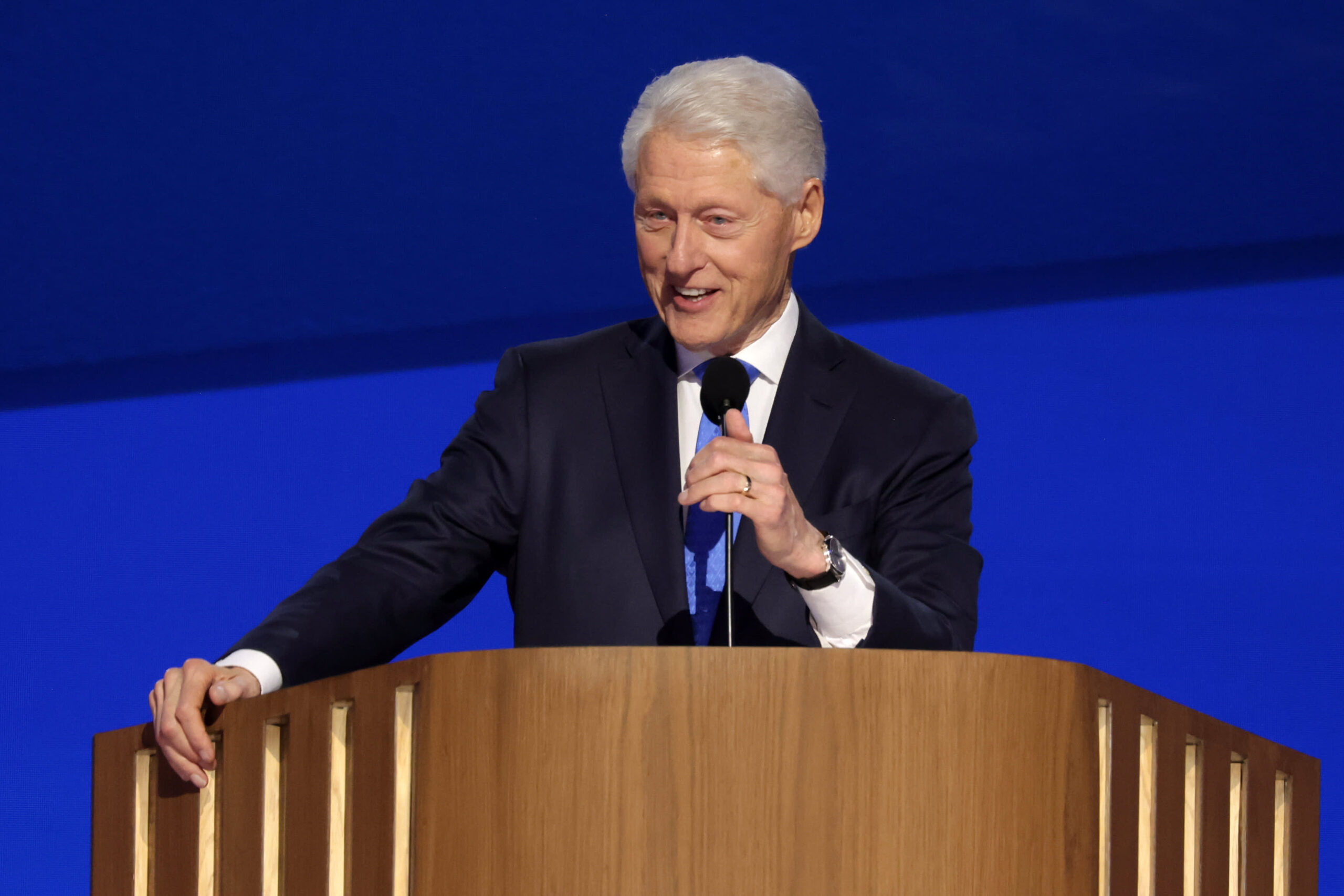 Former U.S. President Bill Clinton speaks on stage during the third day of the Democratic National Convention at the United Center on August 21, 2024 in Chicago, Illinois.