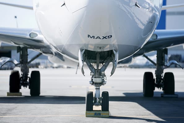 A grounded Boeing 737 Max 9 aircraft at Los Angeles International Airport.