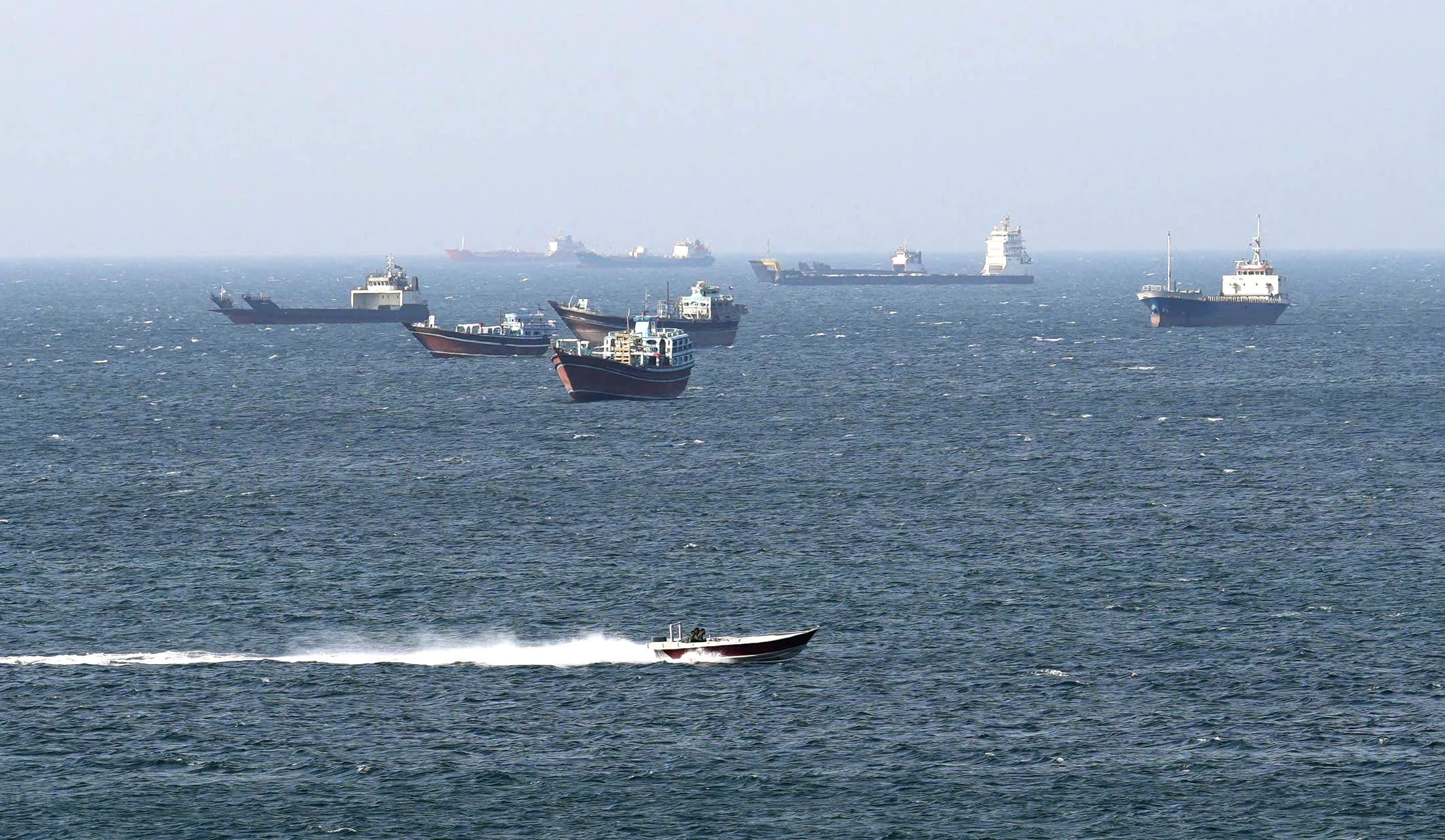 Ships and tankers in the Strait of Hormuz off the coast of Musandam, Oman, April 18, 2026.
