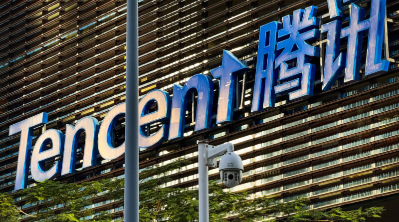 Read moreThe Tencent logo is displayed on the exterior of a building at the company’s headquarters, with a surveillance camera visible