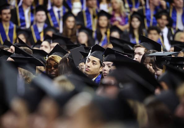 Read moreGraduates listen as actor Sean Astin delivers the keynote speech during the commencement ceremony for the College of Arts and