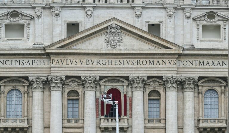 On Monday morning, technicians installed red curtains on the balcony of St Peter’s Basilica, where the new pontiff will make his first appearance.