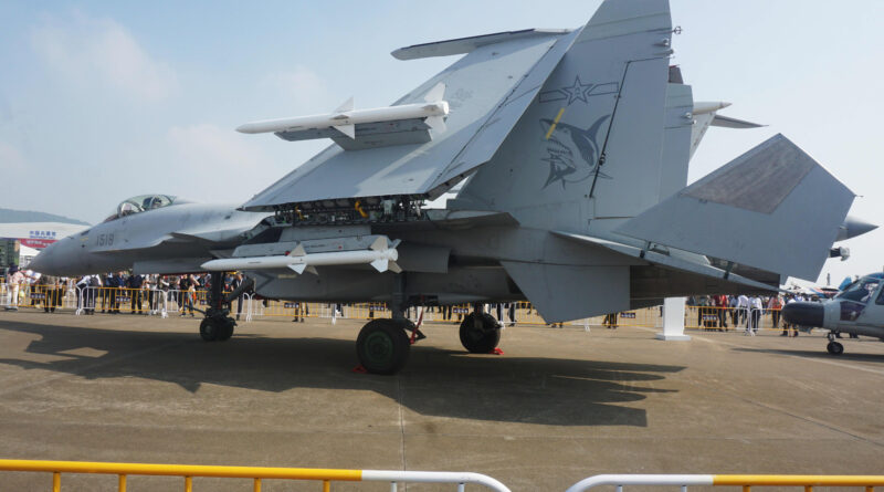 China’s navy showed off its J-15T fighter jet at the 2024 Zhuhai Air Show on Nov. 12, 2024.