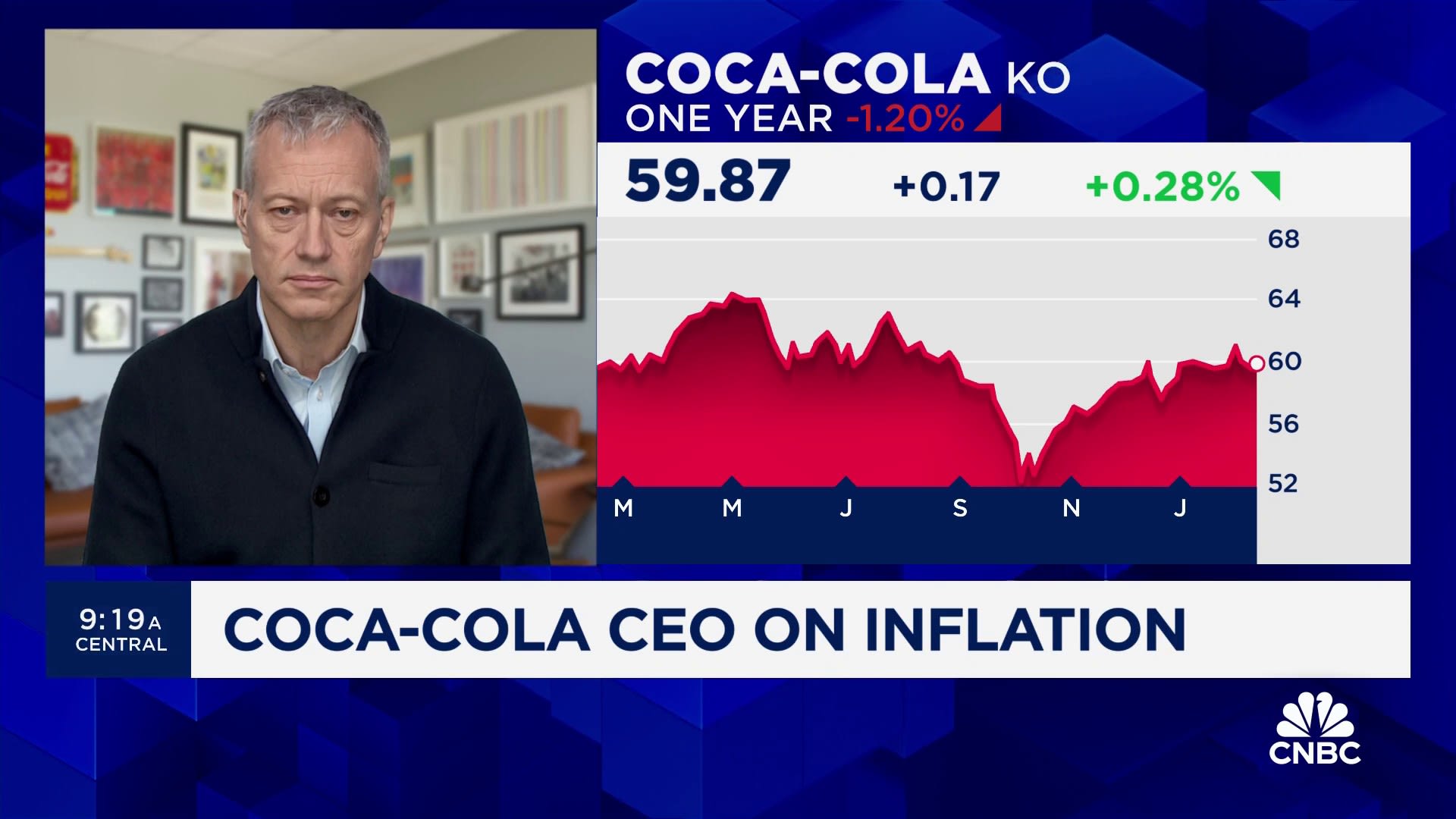 “If one looks at inflation over time, we very rarely get into periods of sustained deflation. That’s just not a consumer effect,” Coke CEO James Quincey said Feb. 13 on CNBC’s “Squawk on the Street.”