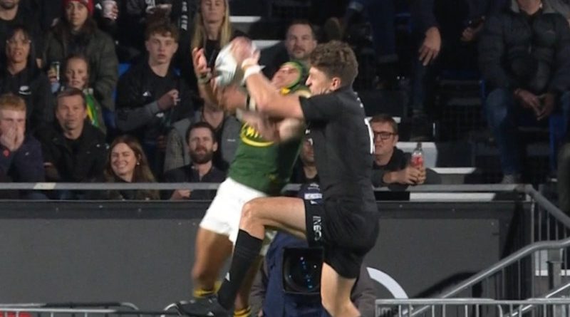 After an epic play, the Springboks were denied their first try of the match when the TMO deemed Cheslin Kolbe had knocked the ball on.Source – Theage