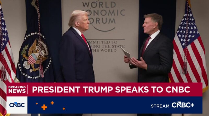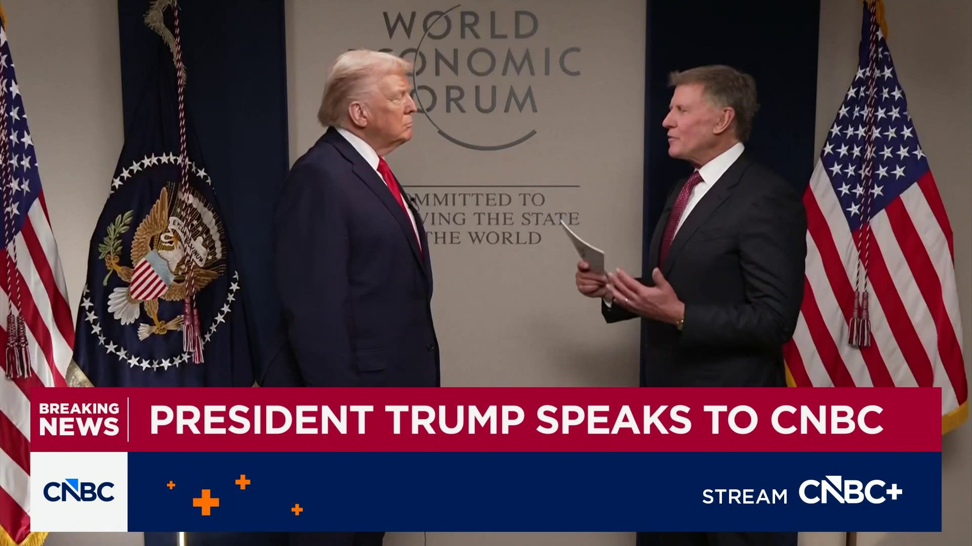 In a social media post shortly before speaking to CNBC at the World Economic Forum, Trump said he would no longer be imposing tariffs against eight European countries for opposing his plans to acquire Greenland.
