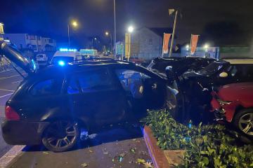 The cars were parked in the forecourt of Egerton Cars on Blackburn Road when a vehicle crashed into the boundary wall and hit a number of parked cars and, it understood, took out a bus stop in the smash.