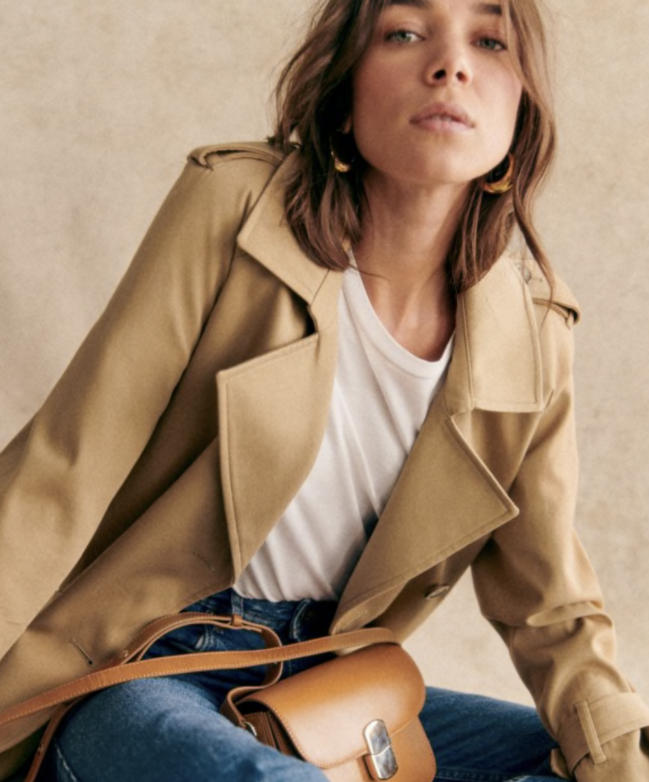 It’s trench coat season in NYC, and I’m busting out the Sézane version I’ve had for years. It’s 100% cotton and looks great over any outfit — from fisherman sweaters, to party dresses, to pajamas when dropping the kids off at school.
