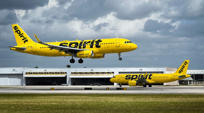 Spirit Airlines airplanes at Fort Lauderdale-Hollywood International Airport (FLL) in Fort Lauderdale, Florida, US.