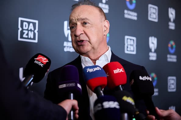 Sir Len Blavatnik speaks during an announcement between Saudi Pro League Al-Hilal Club, DAZN and Riyadh Season on the launch of their dedicated club channel