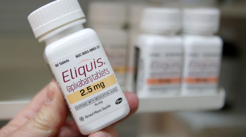 A pharmacist holds a bottle of the drug Eliquis, made by Pfizer Pharmaceuticals, at a pharmacy in Provo, Utah, January 9, 2020.