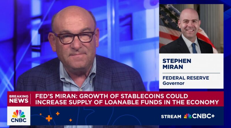Fed’s Miran says stablecoin surge could help push interest rates lower