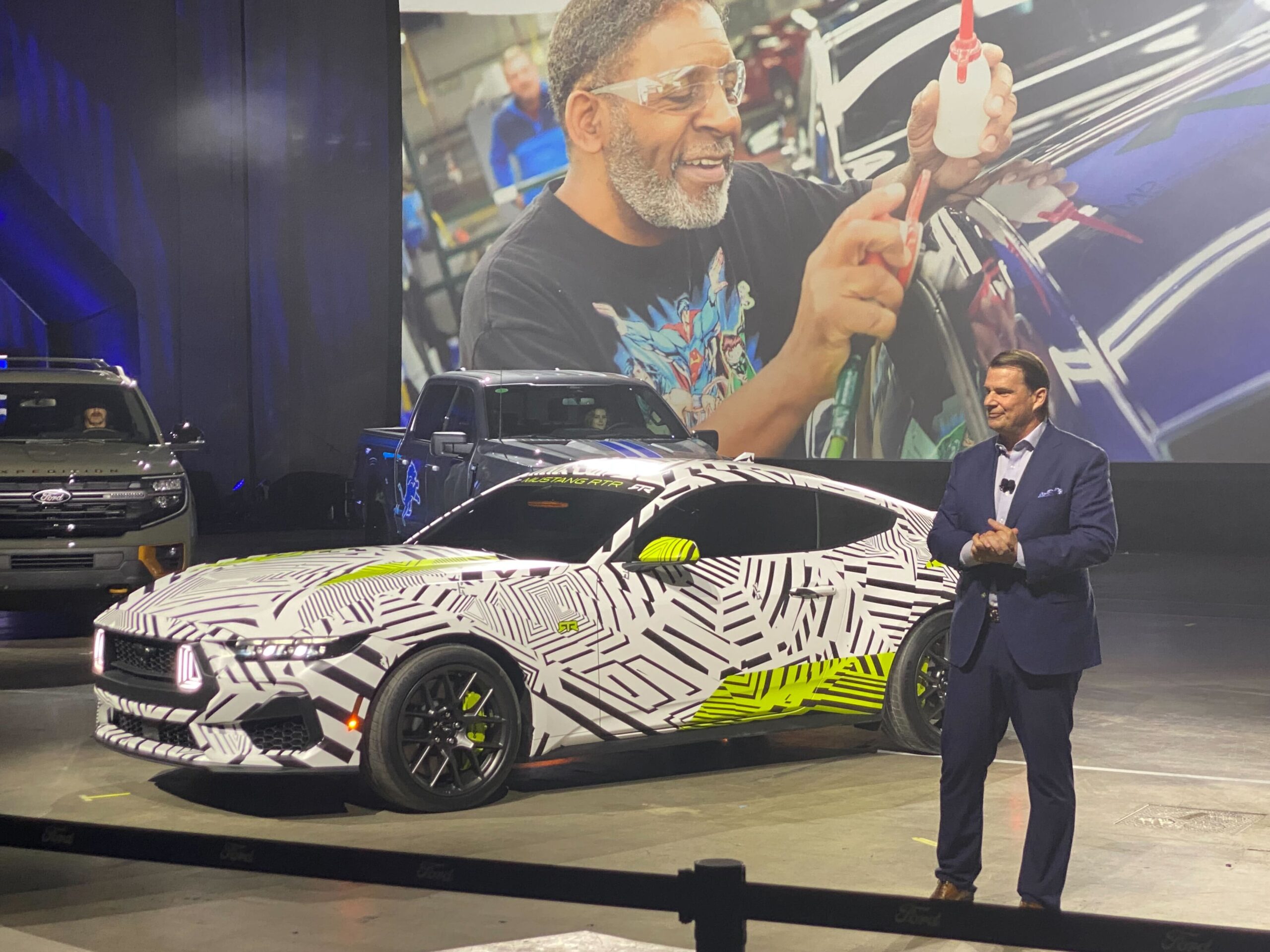 Ford Motor CEO Jim Farley during a reveal of a special-edition Ford Mustang GTD for the Detroit Auto Show on Jan 9, 2024.