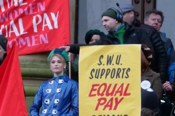 The Bond star was photographed taking part in a protest scene at around 4pm, causing much excitement in the town.