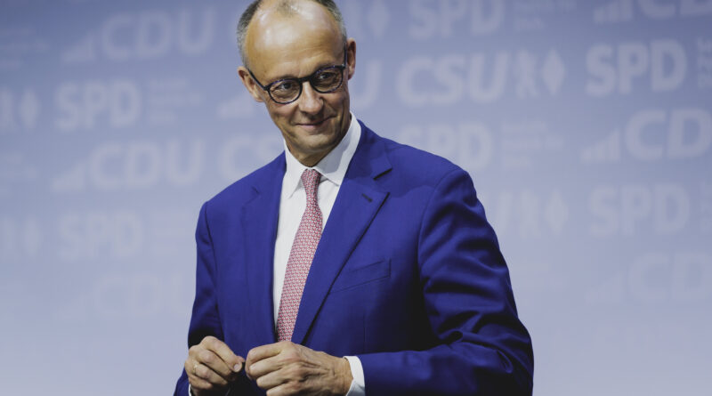Friedrich Merz, designated Federal Chancellor (CDU), is pictured during the signing of the coalition agreement between the SPD, CDU, and CSU on May 05, 2025 in Berlin, Germany.