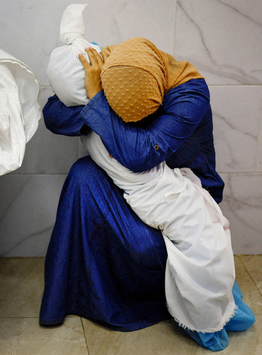Saly was killed when an Israeli missile struck the family home in Khan Younis in southern Gaza. Photographer Mohammed Salem found Abu Maamar embracing her body at the Nasser Hospital morgue in Khan Younis on Oct. 17, 2023.