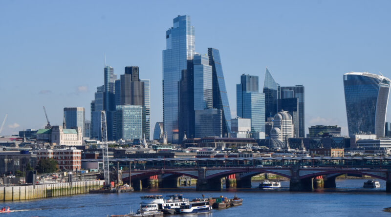 A member of staff poses next to trading boards at the London Stock Exchange on April 25, 2025 in London, England.