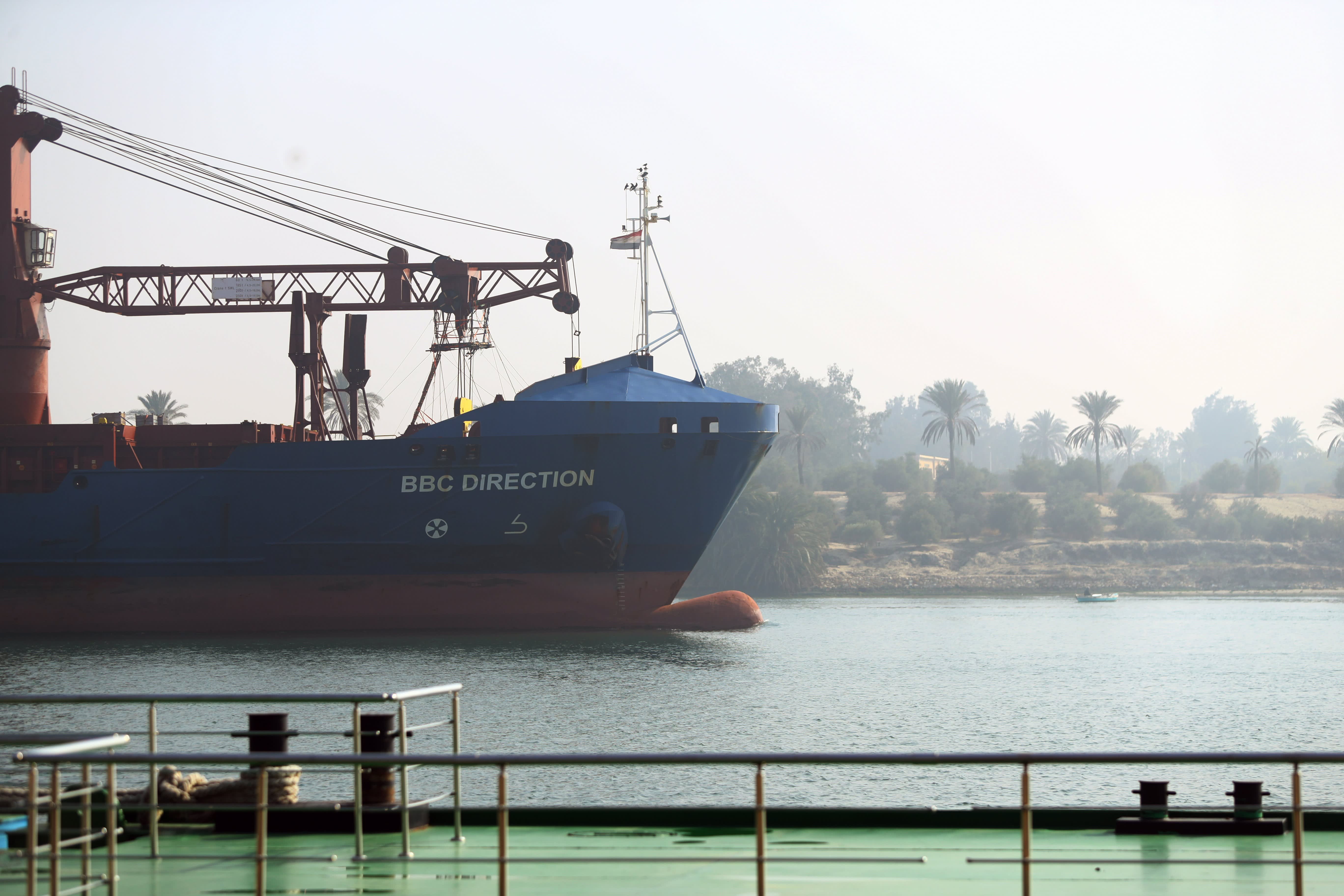 A container ship sails through the new section of the Suez Canal in the Egyptian port city of Ismailia, 135 kms northeast of the capital Cairo on October 10, 2019.