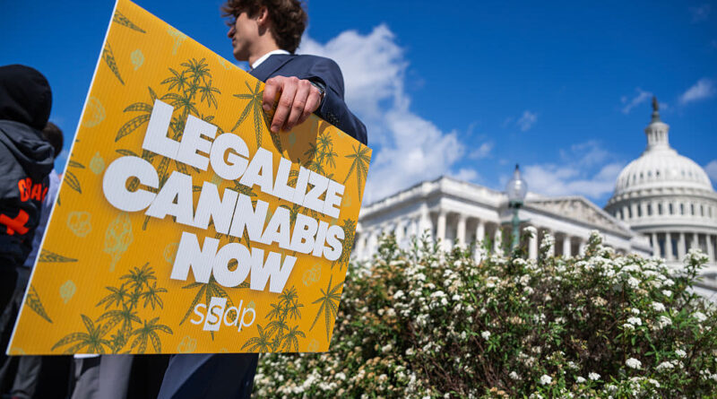 Advocates attend a news conference about the “impact of incarcerating those charged with marijuana-related offenses,” and policy reform ideas, outside the U.S. Capitol on Monday, April 20, 2026.