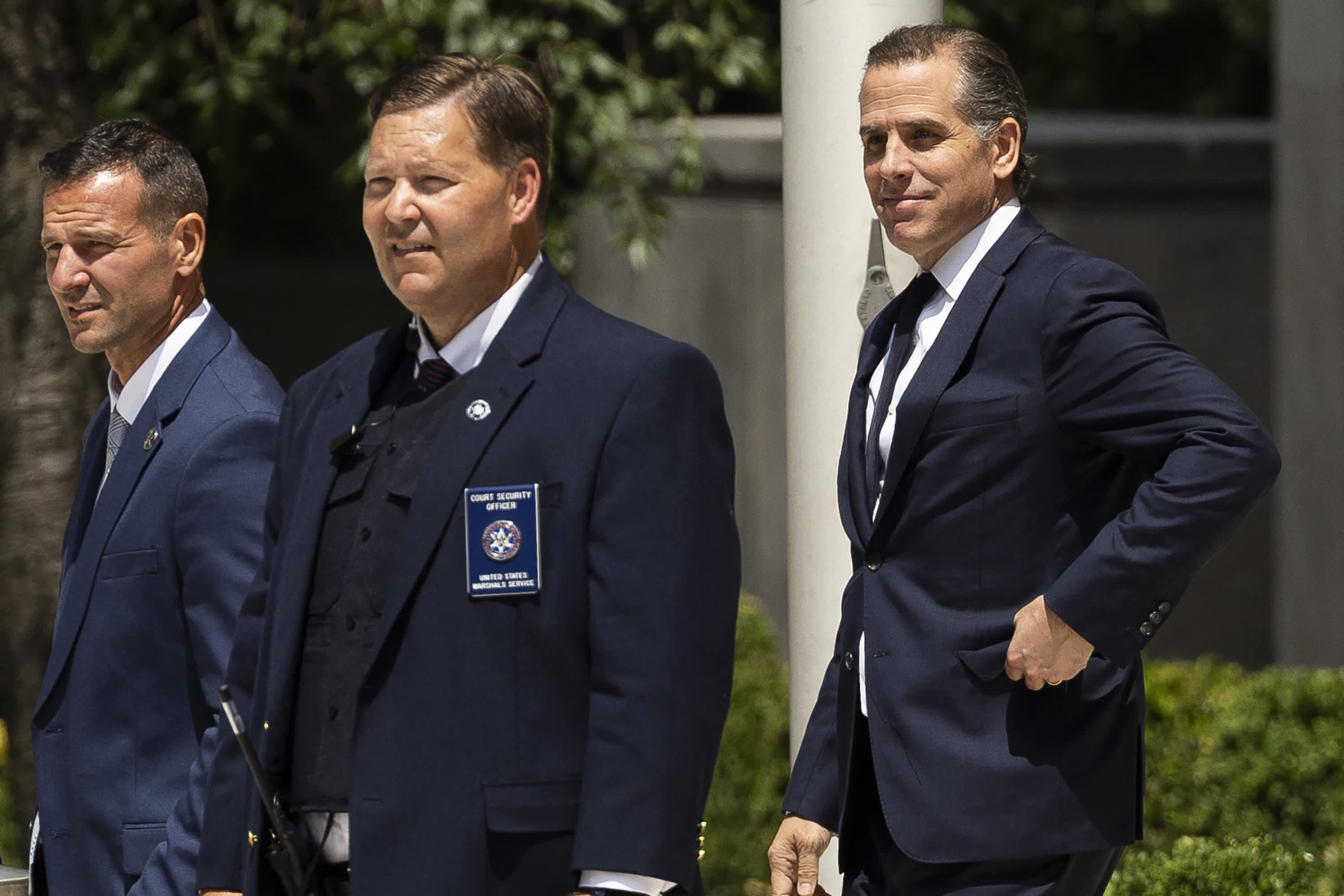 Hunter Biden, son of US President Joe Biden (R), leaves the J. Caleb Boggs Federal Building in Wilmington, Delaware, on July 26, 2023.