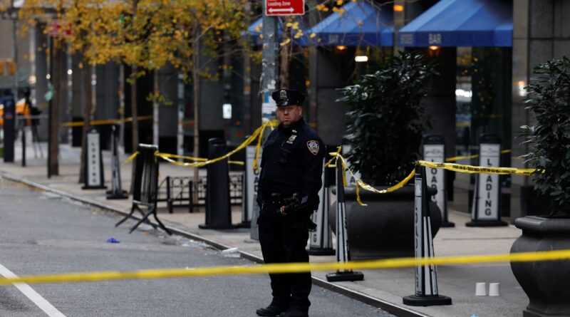 A police officer stands near the scene where the CEO of United Healthcare Brian Thompson was reportedly shot and killed in Midtown Manhattan, in New York City, US, December 4, 2024.