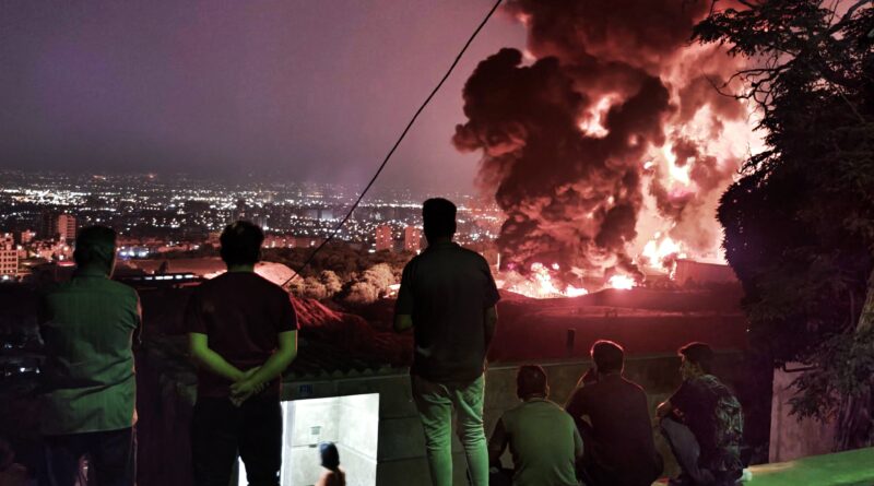 People observe fire and smoke from an Israeli attack on the Shahran oil depot on June 15, 2025 in Tehran, Iran. Iran’s foreign minister said the country would respond “decisively and proportionally” to a wave of attacks that Israel launched beginning in the early hours of June 13. The attacks targeted multiple military, scientific and residential locations, as well as senior government officials.
