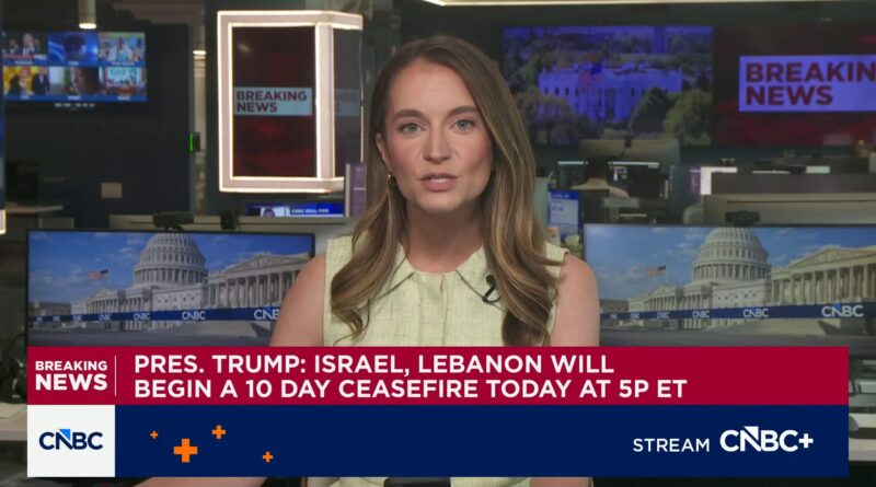 President Trump: Israel, Lebanon will begin a 10 day ceasefire today at 5 p.m. ET