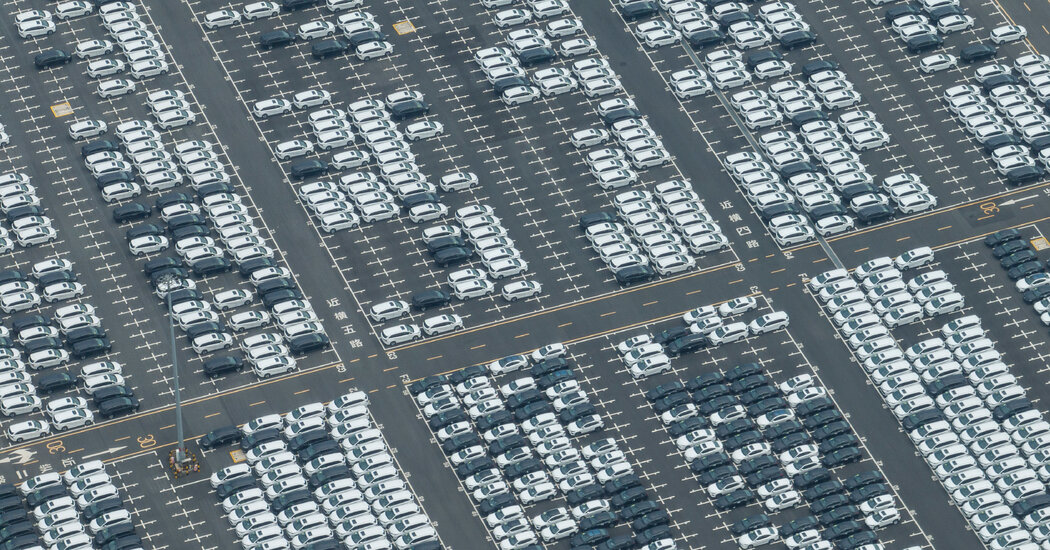 New cars parked at a lot in Guangzhou this week. Credit…Qilai Shen for The New York Times