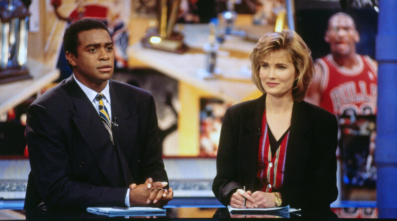 Ahmad Rashad and Willow Bay look on during an Inside Stuff Episode taping circa 1993 in Secaucus, New Jersey.