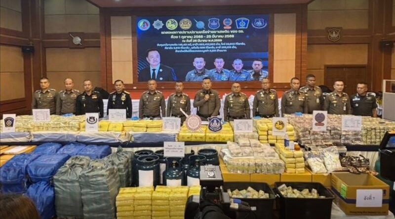 A sweeping six‑month narcotics crackdown has resulted in the seizure of nearly 700 million methamphetamine pills and the freezing of assets worth almost 6 billion baht, as drug syndicates continue to deploy increasingly inventive smuggling techniques, the national police chief said on Thursday.