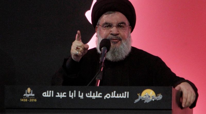 FILE PHOTO: Lebanon’s Hezbollah leader Sayyed Hassan Nasrallah addresses his supporters during a public appearance at a religious procession, one day before the Shi’ites will mark the day of Ashura, in Beirut’s southern suburbs, Lebanon October 11, 2016.