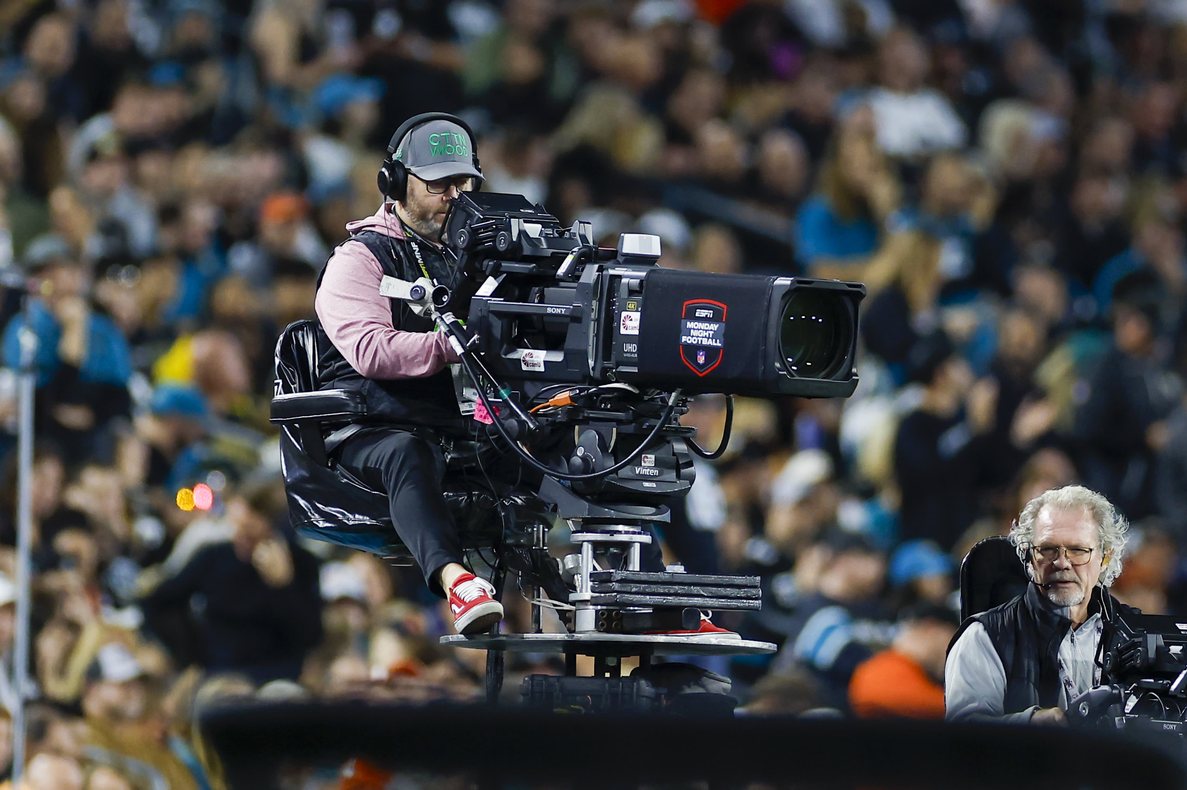 A view of a ESPN cameraman during the game between the Jacksonville Jaguars and the Cincinnati Bengals on December 4, 2023 at EverBank Stadium in Jacksonville, Fl.