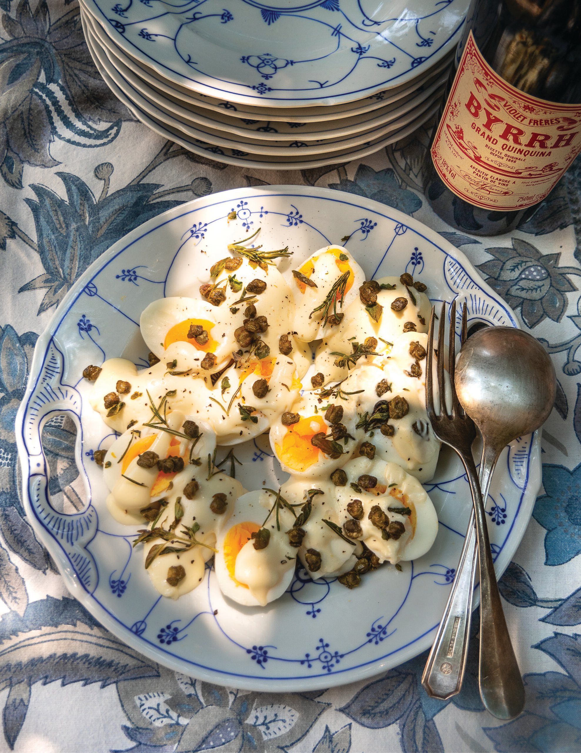 “I could say I did it in order to learn the language,” she writes in her new cookbook Bohème Cooking, but “really, I did it for the bread and cheese — a staple of my college vegetarian diet.” Back then, it wasn’t easy to be a vegetarian in France where “lardons were scattered on every frisée salad,” but over the years (and after working with the vegetable-focused visionary chef Alain Passard), Carrie found herself drawn to hosting garden-forward gatherings. Her food is somehow elegant and unfussy, the kinds of dishes you want to have on hand as you head into the summer — like these simple eggs with mayonnaise and fried capers.